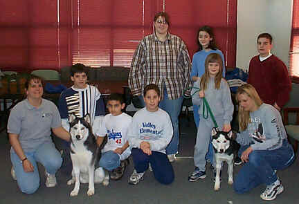 The Delaware Valley Siberian Husky Rescue provided an educational program at the Women's Humane Socieity in Bensalem PA. These kids learned about the breed and training. Roxy showed them the importance of keeping a dog in a safe envrionment - especially Siberian Huskies that are known to run away!